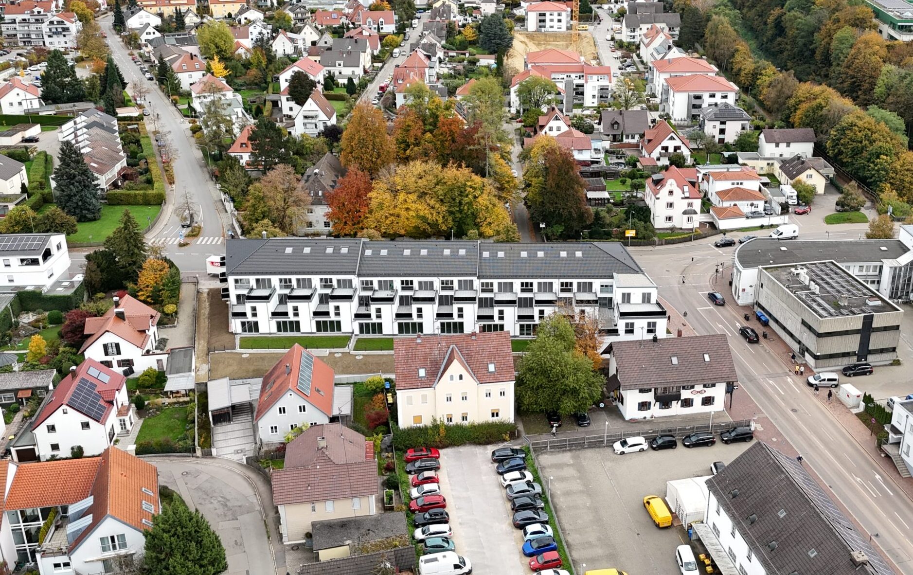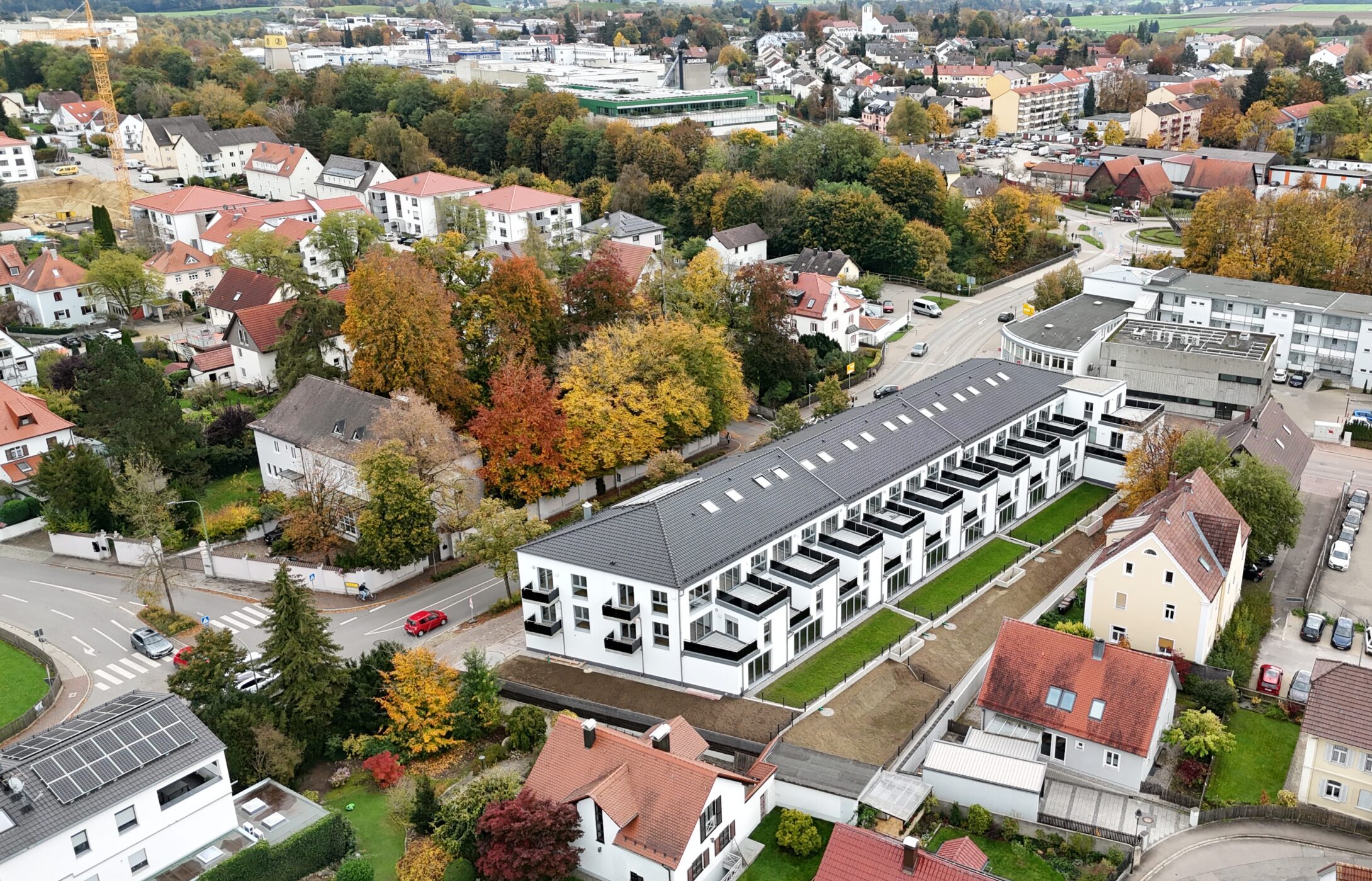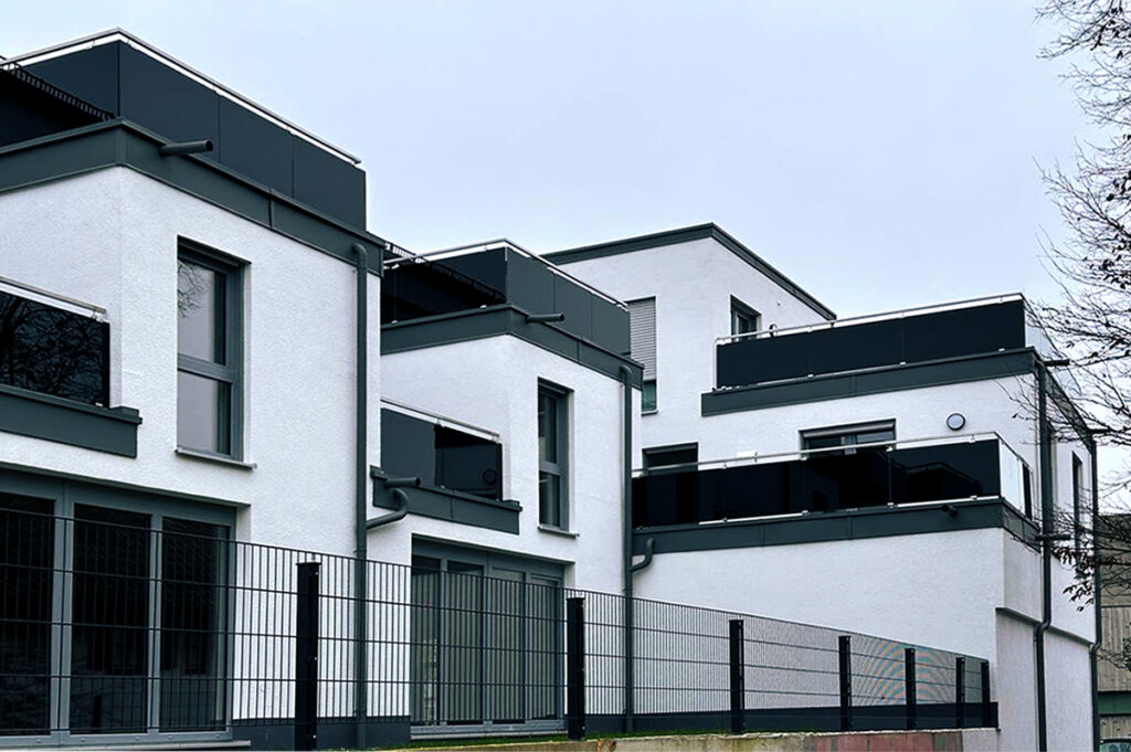 Das moderne Erscheinungsbild des Gebäudes vereint Schlichtheit und Funktionalität, fügt sich harmonisch in die umgebende Bebauung ein und unterstreicht das Gesamtbild des Komplexes.